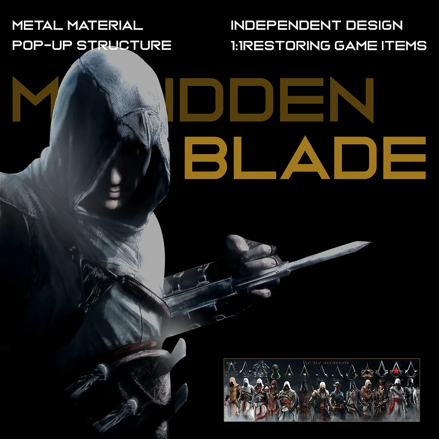 At MyHiddenBlade, you can purchase a wide range of high-quality hidden blades. We offer everything from regular full-metal hidden daggers and Phantom Blades to Hidden Guns, Mechanical Hidden Blades, Poison Blades, Bracer Blades, Dual Hidden Blades, and Assassin's Gauntlets. Additionally, we have 3D-printed and plastic hidden blades, as well as cosplay props and costumes.
